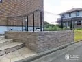 石張りのアプローチ階段横に、重厚でやさしい角のとれた石積みの化粧ブロックを、土留めとして設置しました。外周フェンスは、既存のものと形を合わせ、一体感のある自然な印象に仕上げました。お住いの風格ある落着いた印象に調和し、外観の美しさをバリューアップした、オシャレなデザインです。