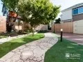 新築外構一式工事を承りました。お住いの顔となる駐車スペースには2種類のスタンプコンクリートを採用。広めにとった人工芝の目地で自然のあたたかみをプラスし、華やかであたたかみのある表情に仕上げました。主庭と駐車スペースの間には植栽スペースを設置。自然豊かな空間がやわらかさとぬくもりのある空間を演出する外構デザインに仕上げました。