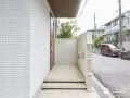新築外構一式を承りました。直線ラインがシャープな印象のお住まいに似合う外構プランをご提案。玄関前の目隠しを兼ねて、縦長の大きな重ね塀を施工しました。RC杉板調のタイルやダークカラーのタイルでそれぞれあしらっています。スリットを塗装したり、スクリーンフェンスを組み込むことで、意匠性を高めました。またアプローチはさりげない浮き階段のデザインが高級感を演出。斜めに配置したことで、デザイン性に加えて、踏面が広く、使い勝手も抜群です。グレートーンでまとめた玄関周りには、植栽で柔らかな彩りをプラス。ライトをちりばめたことで、温かな光が灯るモダンな新築外構となりました。