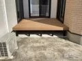お庭にウッドデッキと目隠しフェンスを施工したいとご依頼をいただきました。お手入れのしやすい人工木ウッドデッキの中から選んでいただいたのは、夏の直射日光下でも天然木より熱が高くならない高機能な「MINO 彩木(あやぎ) 」です。周りを囲む縦格子の目隠しフェンスも同じMINO製で揃え、上質なデッキ空間を作り出しました。またシェードを取り付けるための角柱や金具も一緒に設置しています。アプローチは植栽スペースを縮小して綺麗に舗装し、軽自動車が玄関前に停められるようにリフォームしました。