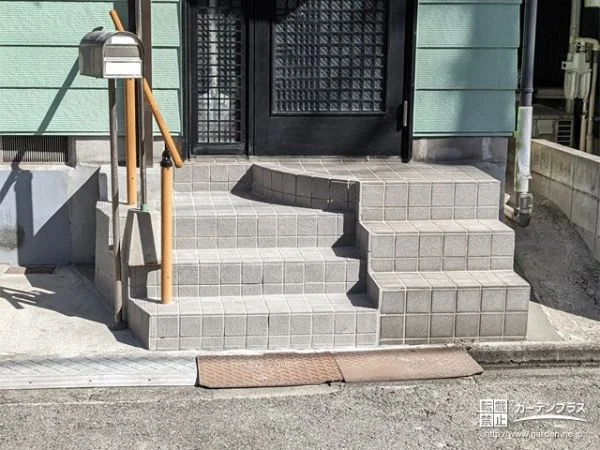 新築のお住まいの外構工事をご依頼いただきました。南側のお庭から北側のファサードまで土間コンクリートで舗装し、雑草に悩まされない清潔な外構に。南側のお庭はプライバシー性を高められるよう目隠しフェンスも設けました。ファサードの中央にはオレンジとグレーの2色のタイルを貼ったアプローチを設け、明るい雰囲気を演出しています。