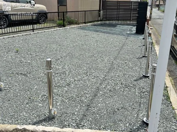 シルバーフレームとR型屋根が柔らかい印象のカーポート設置工事