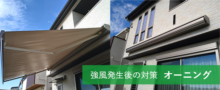 台風等の強風で、オーニングに破損が見られる場合、以下の手順で復旧を行ってください。