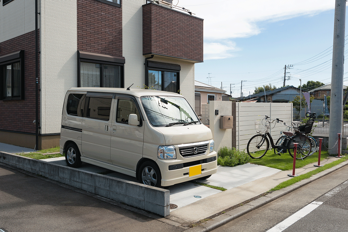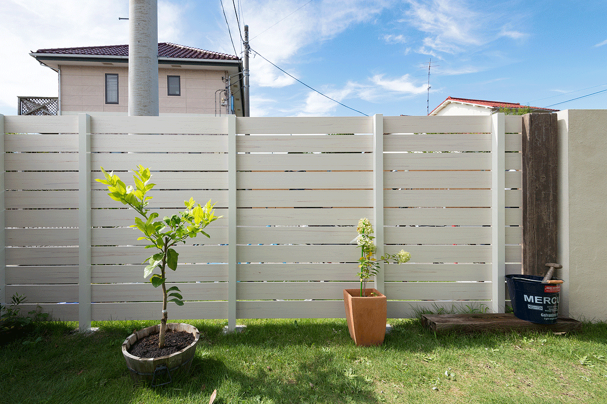門柱 塗仕上げ アプローチ 東洋工業 レイルスリーパーペイブ 駐車スペース 土間コンクリート + 芝目地 ウッドデッキ Value Select マージウッドデッキ 主庭 芝生 目隠しフェンス F&F マイティウッドフェンス ポスト 御施主様御支給品 照明 オンリーワン 真鍮製くもりガラス 立水栓 御施主様御支給品 - 施工金額:120万円