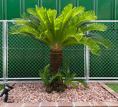門柱 コンクリートブロック積み ポスト パナソニック ビッグアメリカン 表札 美濃クラフト インターホンカバー オンリーワン コクーン 門灯 オンリーワン 真鍮製ポールライト 境界・外周フェンス 朝日PCフェンス 主庭門扉 朝日PC門扉 主庭 人工芝 + 防草シート 植栽 ソテツ 駐車スペース 土間コンクリート + 化粧砂利目地 - 施工金額:150万円